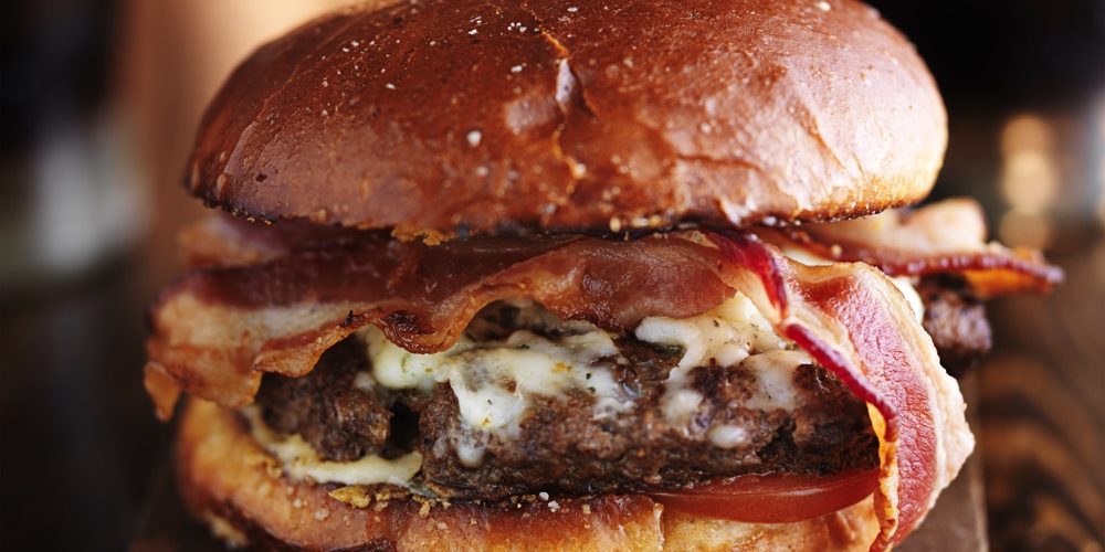 Étalez de la sauce bourguignonne sur chaque face du pain. Déposez le steak recouvert de fromage fondu, une tranche de bacon et une rondelle de tomate. Ajoutez le chapeau du burger. Dégustez chaud accompagné de frites.